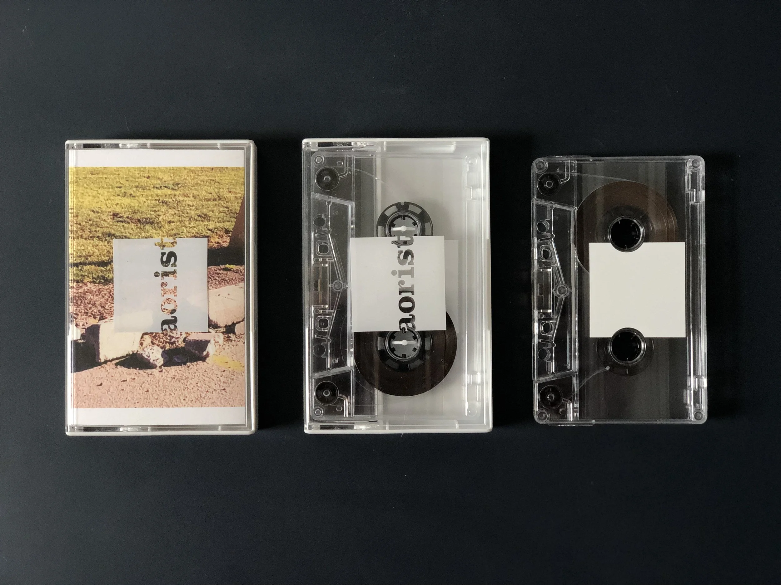 Using clear stickers on the cassette cases allowed me to use any J-card image for the artwork without printing the aorist logo on the photographs.